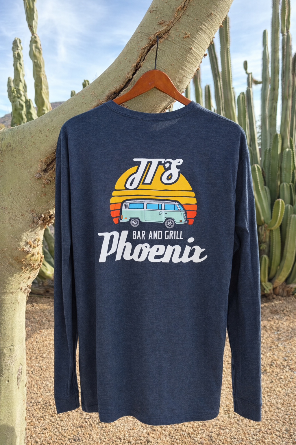 Hit the road in style with our ‘Bus Tee’ — featuring a retro Volkswagen van design that captures the laid-back JT’s vibe. A perfect mix of desert cool and classic cruiser energy.